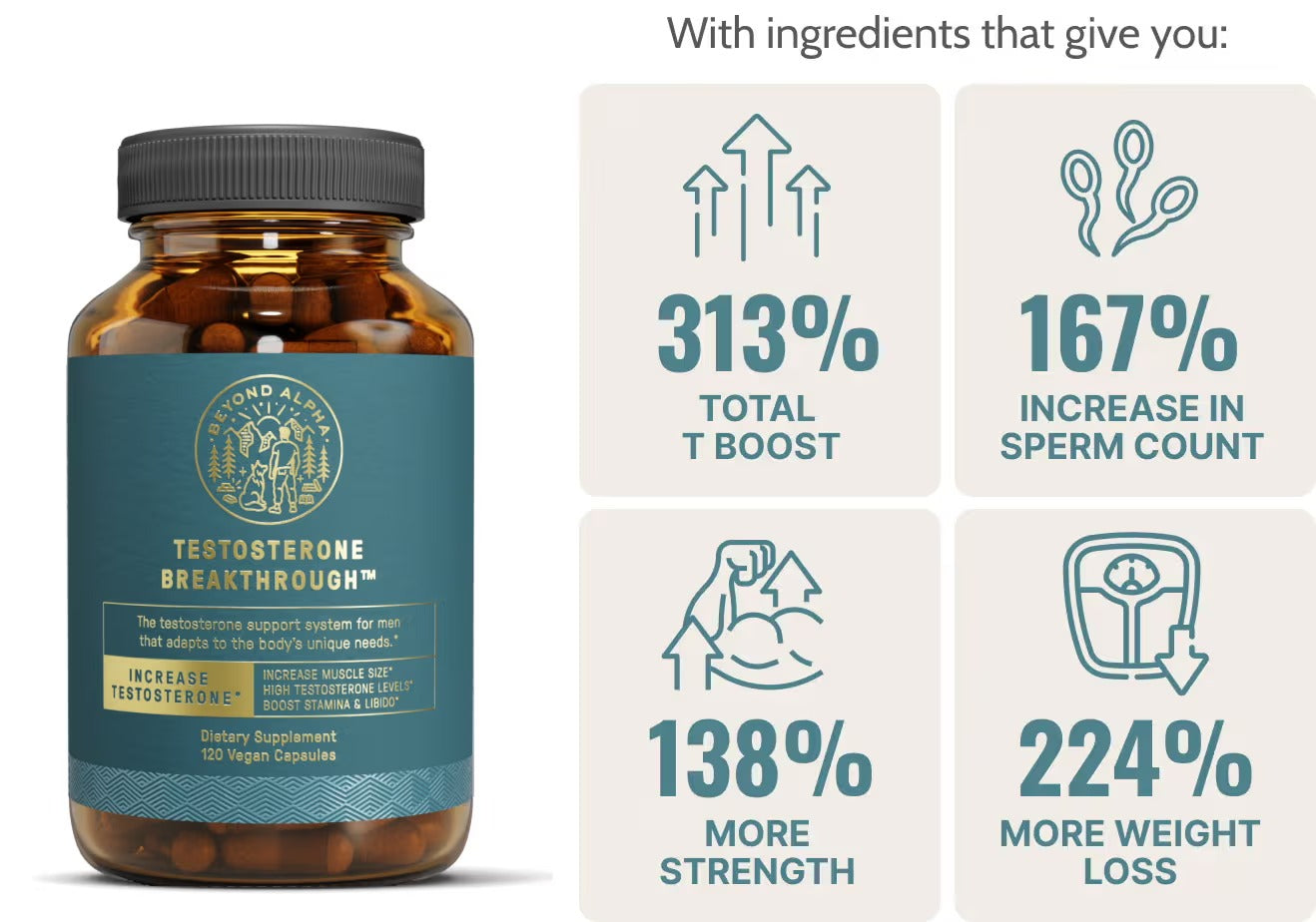 T Breakthrough™ is a natural T-boosting supplement designed for men. It contains14powerful ingredients that have been scientifically shown to increase T levels, improve energy, muscle growth, and reduce fatigue. The ingredients work together to naturally support your body’s T production and help combat issues like weight gain, low energy, and decreased libido.